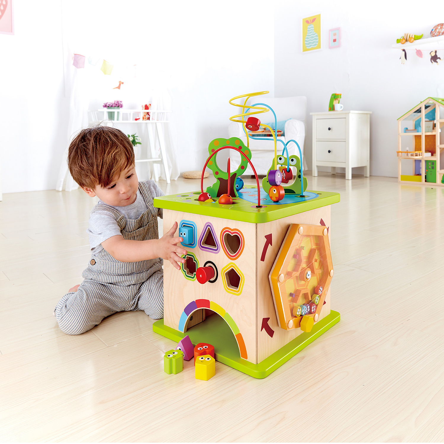 • Деревянный игровой Бизиборд для малышей - это центр активности, который заставит развиваться воображение малыша. В пятистороннем игровом кубе представлены разные животные, которые вдохновляют детей на воображение и истории. • Сторона 1: Страна приключений из бисера. Помогите рыбе и жукам не попасть на обед лягушке. Подходит для развития логического мышления и ловкости. • Сторона 2: Сортировщик различных фигур помогает детям научиться различать форму. • Сторона 3: Нужно расставить цветные головы животных в соответствии с цветными кругами. Эта сторона обучает детей цветам. • Сторона 4. Крутите ручку и отправьте пчел в полет в нужном направлении. • Сторона 5: Стучим по шарам с помощью молотка, пока они не упадут вниз. Подходит для укрепления мышц рук и распознавания цвета ребенком. • Игровой куб состоит из пяти сторон, из десяти частей с деревянными шарами, фигурками. • Обучающая игрушка-головоломка для малышей помогает развить моторику, логические навыки и настойчивость. • Изготовлен из прочного дерева, безопасных для детей материалов и краски на водной основе. • Развивающая игрушка - отмеченный наградами и рекомендуется для детей от 12 месяцев и старше. • Способствует развитию навыков в решении проблем, развитию логики, помогает детям начинать и завершать задачи, развивает моторику и настойчивость. |