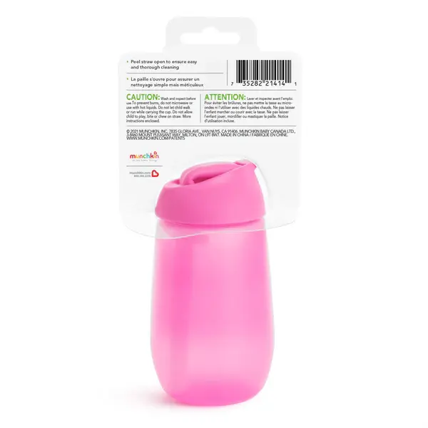 Munchkin поильник непроливайка с трубочкой Simple Clean Straw 296 мл с 12 мес ,розовый 90019